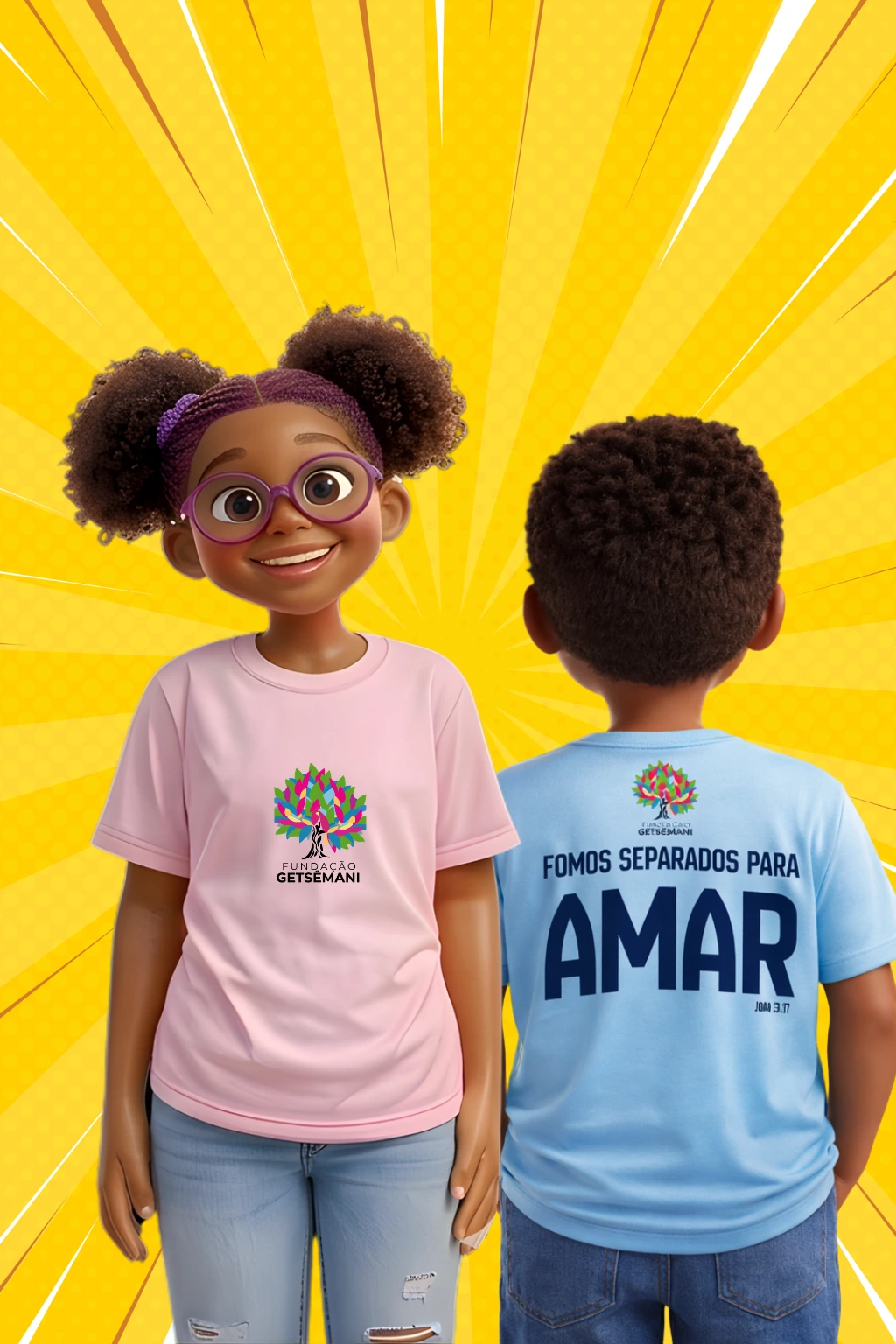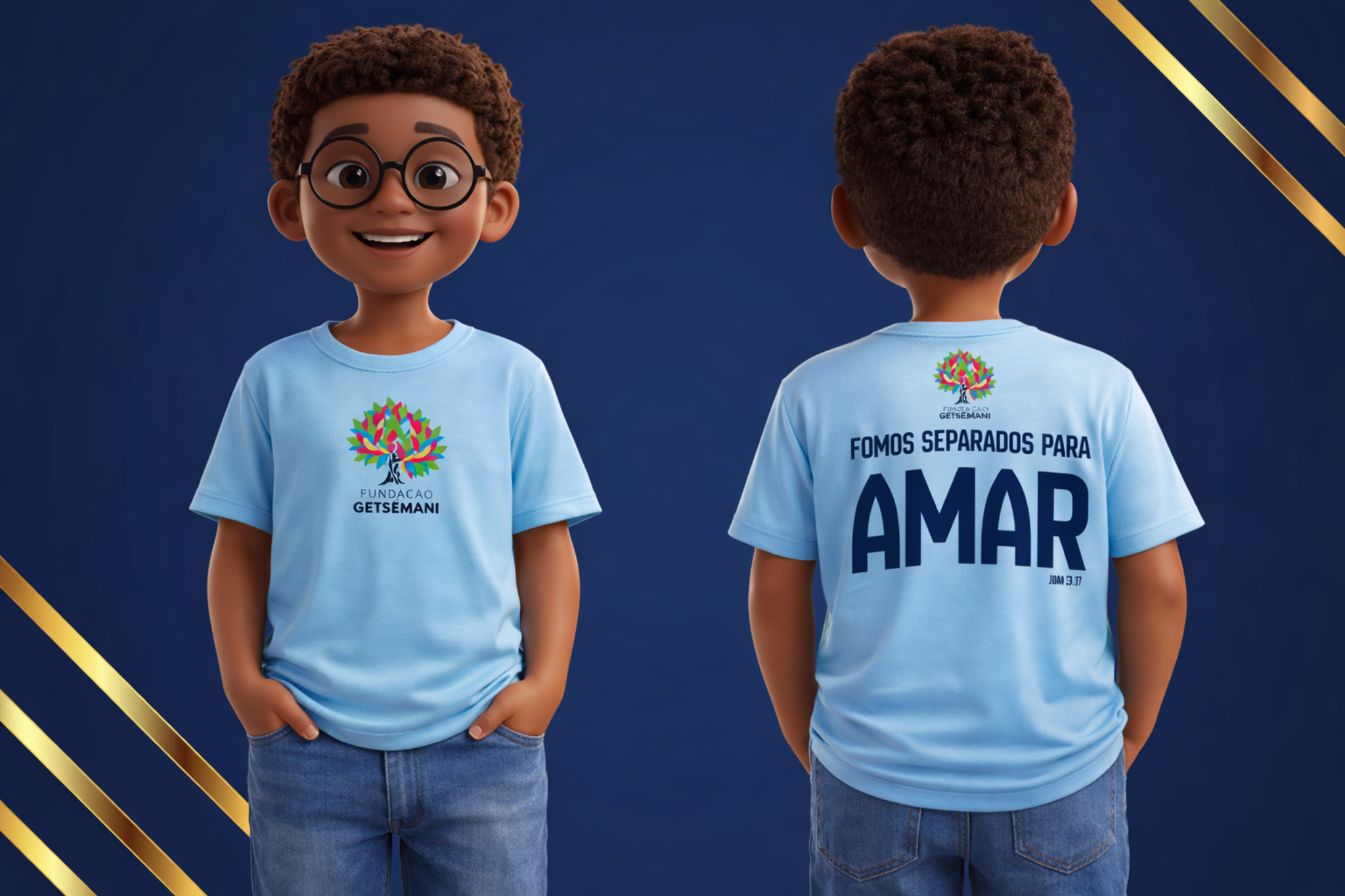 Cada camiseta adquirida contribui diretamente com os projetos e atividades da Fundação Getsêmani.